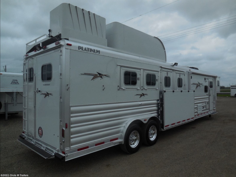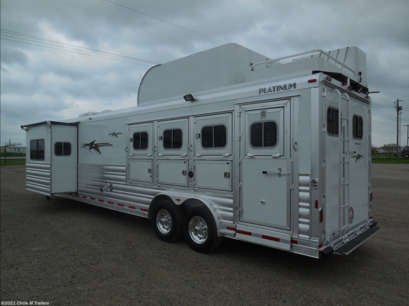 Browse our large selection of new living quarter horse trailers for sale at our Texas trailer dealership in Kaufman, Texas. We are proud to carry aluminum horse trailers that are designed and built by top manufacturer Platinum with interiors produced by Outlaw Conversions & Sierra Interiors. We are confident in the outstanding quality of each living quarter trailer on our lot.
