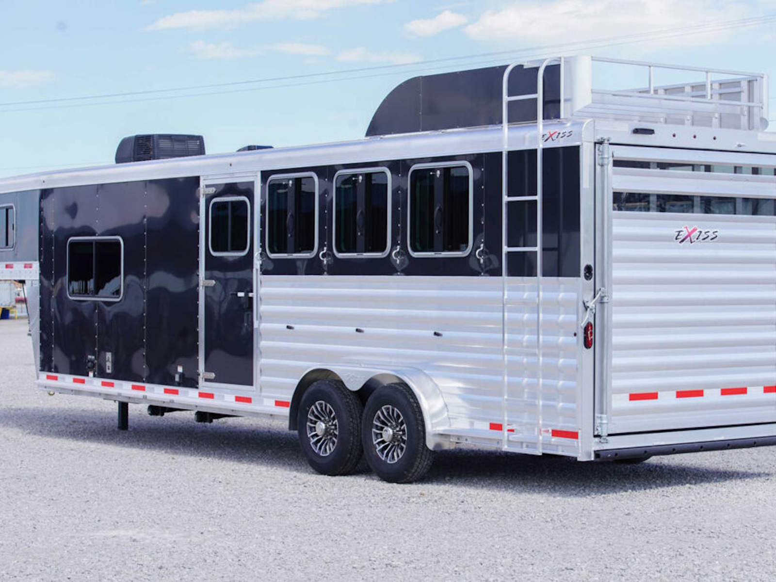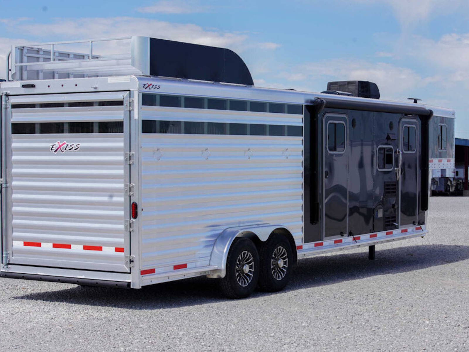 - Every Exiss horse trailer features full‐length, interlocking extruded aluminum flooring. This flooring runs from the tip of the trailer to the tail and is ribbed to add strength while also allowing the floor mats to air out.