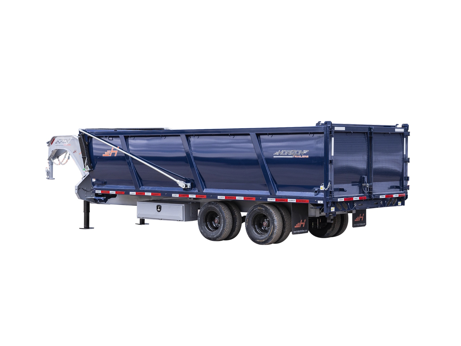 Stand out with the HZH 30K trailer's vibrant two-tone color options, military-grade powder coat finish, and bold design. Engineered for performance, its heavy-duty steel construction is complemented by practical features like extra visibility marker lights, welded D-rings, and safety-grade components. It's not just a trailer—it's a statement of excellence.