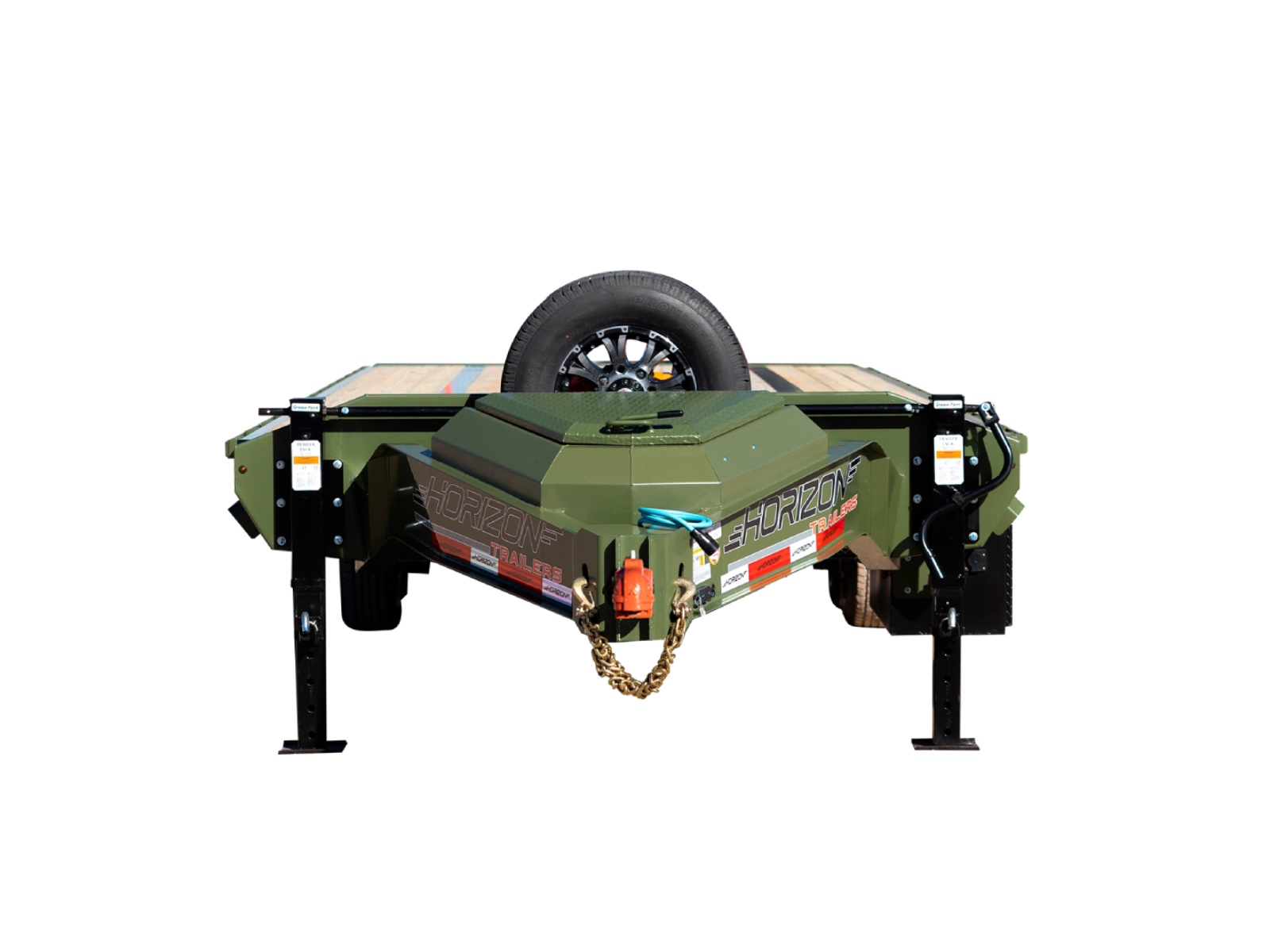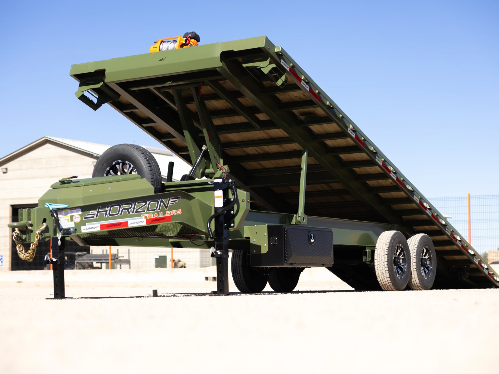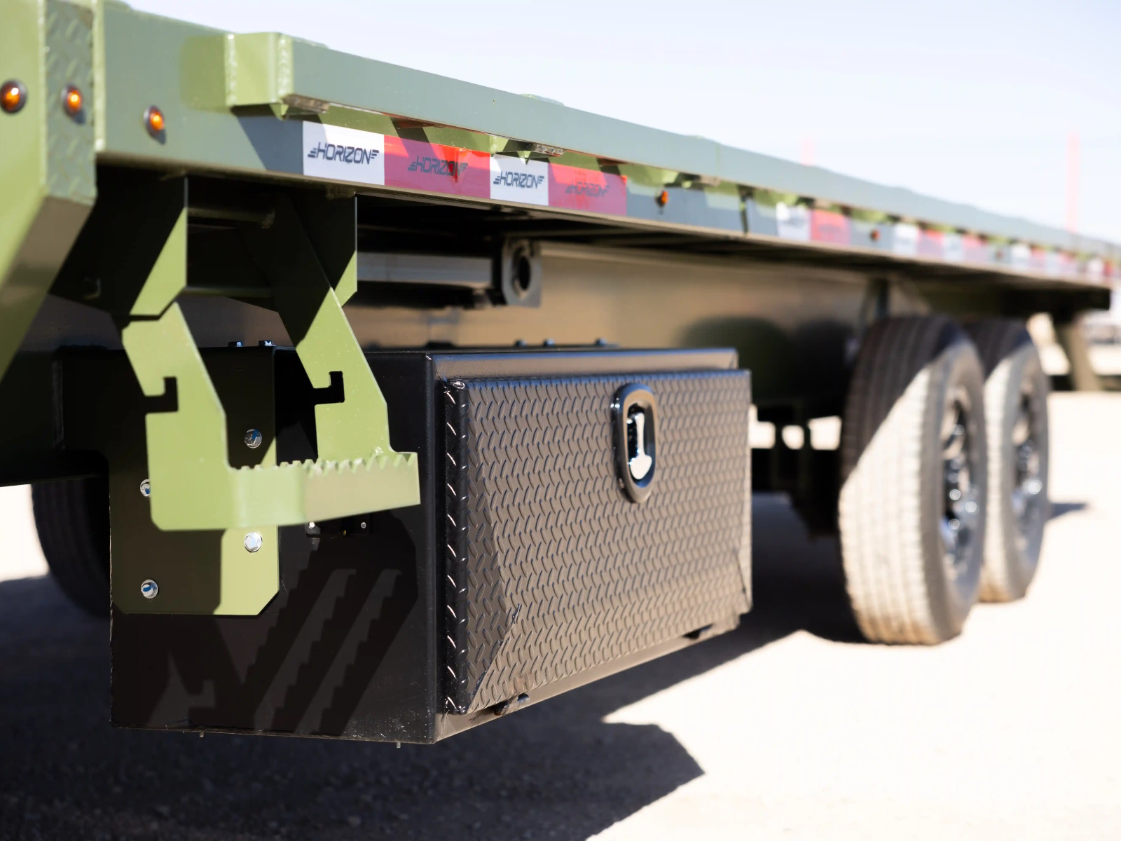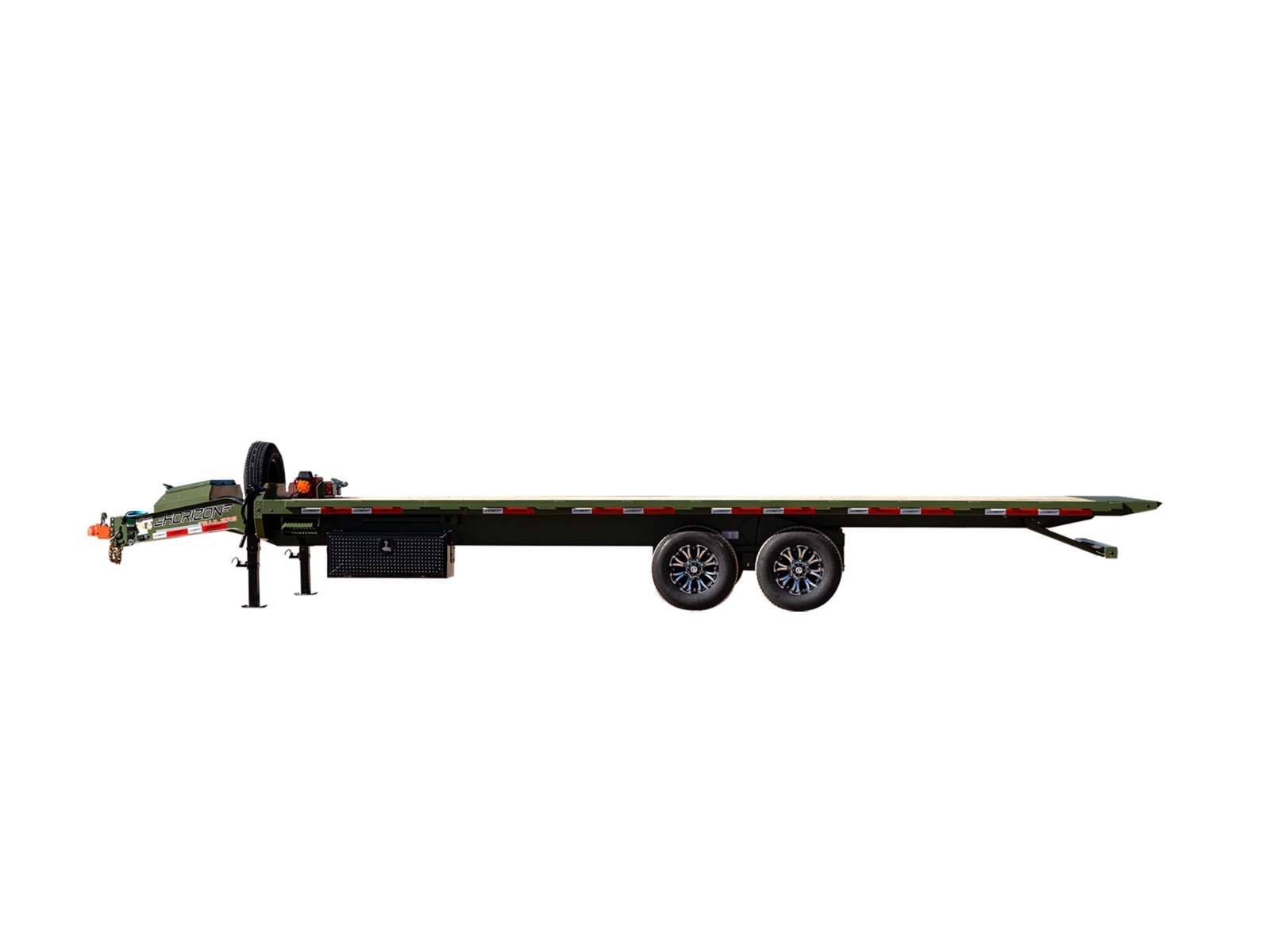 Stand out with the FFT 15.2K Full Tilt Flatdeck. From its military-grade powdercoat finish to a range of color options, it's as stylish as it is tough. Designed with a diamond mesh toolbox and safety-grade chains, this trailer ensures secure, reliable transportation. Performance and aesthetics come together in one powerful package.