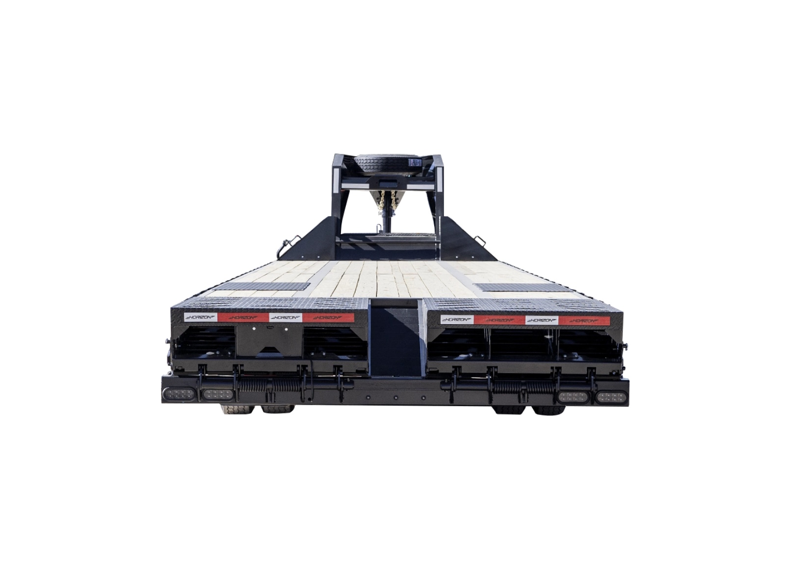 Discover the FHZ 25K 102" Hotshot Flatdeck Trailer, a reliable and powerful gooseneck trailer designed to handle up to 25,000 lbs GVWR. With a durable 12" I-beam frame, spacious 102" deck width, and lengths ranging from 20' to 44', it's equipped with features like a mega lockable toolbox and heavy-duty ramps for your toughest hauling needs.