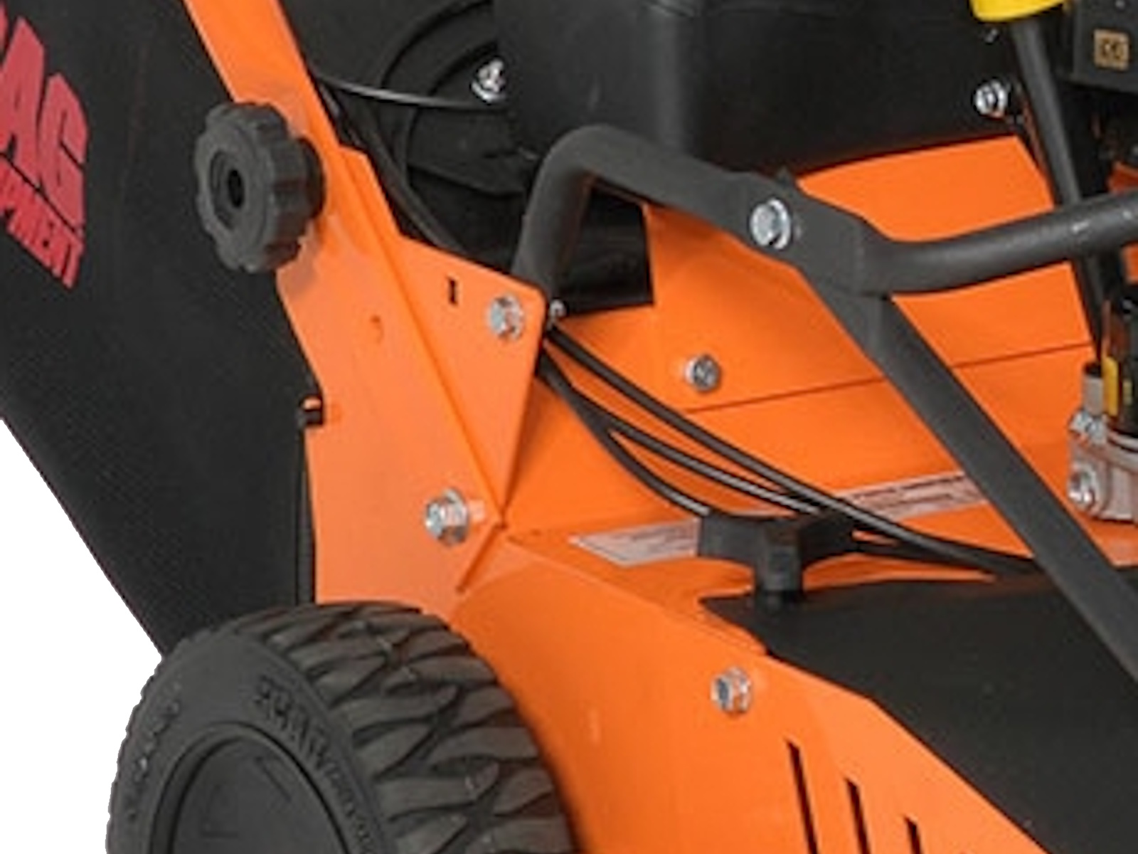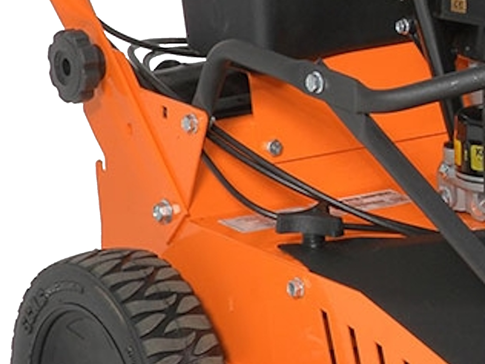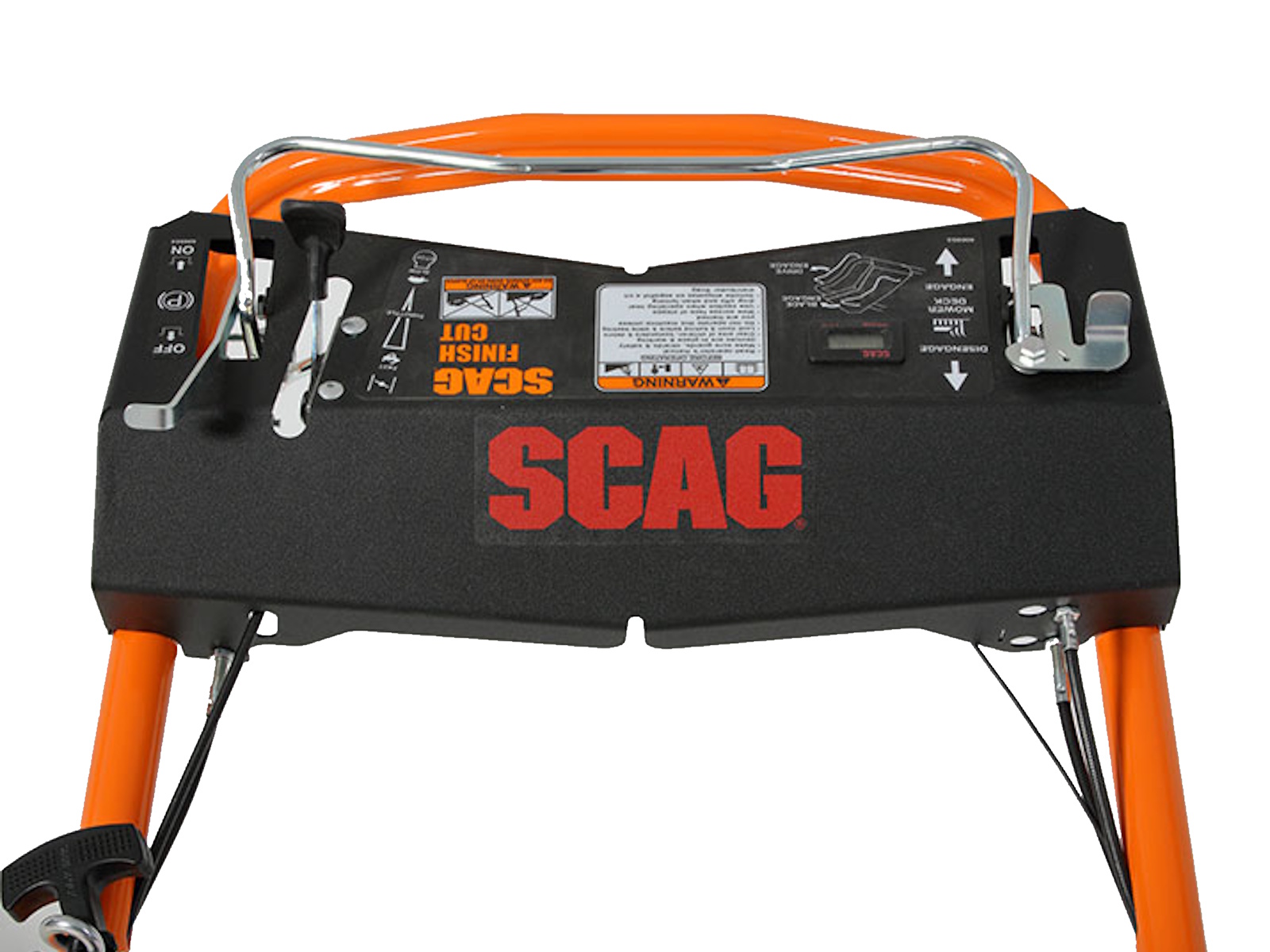 • Oversized handles feature internally routed cables to protect from potential snags. Handle features tool-free adjustment, up and down, to fit operator height preference. Additional vertical adjustment setting for transportation or storage.